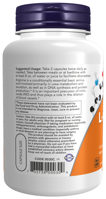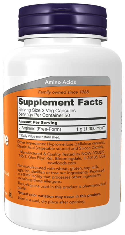 NOW L-Arginine 500 mg, 250 капсул