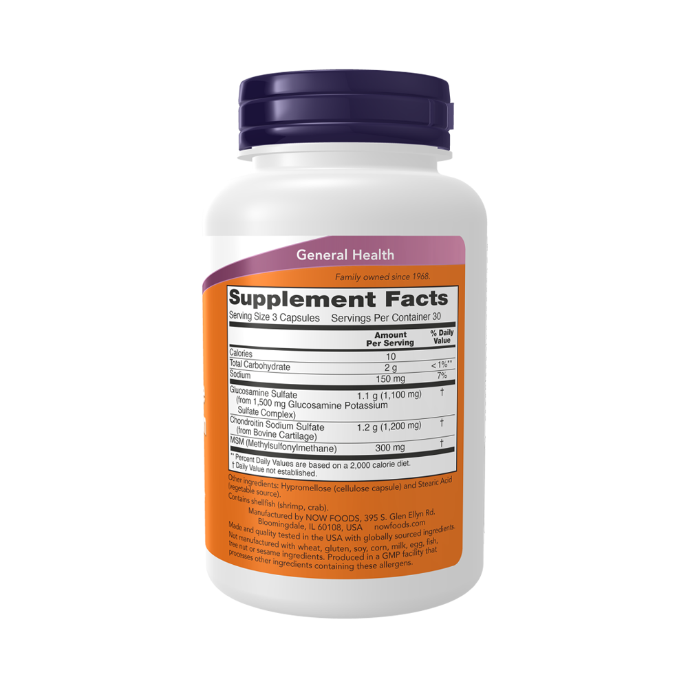 NOW Глюкозамин и хондроитин с метилсульфонилметаном сочетают в себе три наиболее известных питательных вещества, необходимых для поддержания здоровья суставов, в одной пищевой добавке. Глюкозамин и хондроитин способствуют нормальной подвижности и комфорту суставов. Метилсульфонилметан является природным соединением серы, обеспечивающим оптимальную питательную поддержку для формирования здоровых суставных структур.