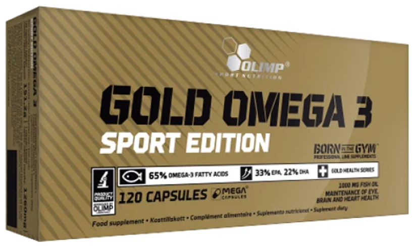 Gold omega 3 sport edition содержит омега-3 жирные кислоты в желатиновых капсулах. высококачественный рыбий жир из рыбы холодных морей, более чем на 50% состоящий из эйкозапентаеновой (ера) и докозагексаеновой кислот (dha), которые являются неотъемлемой частью полноценного рациона.
